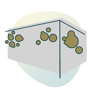 A little bit of mildew is typical in humid rooms like bathrooms. However it’s not typical to find large amounts developing on a non-shower wall, the ceiling or on baseboards, particularly if these surfaces feel squishy to the touch.